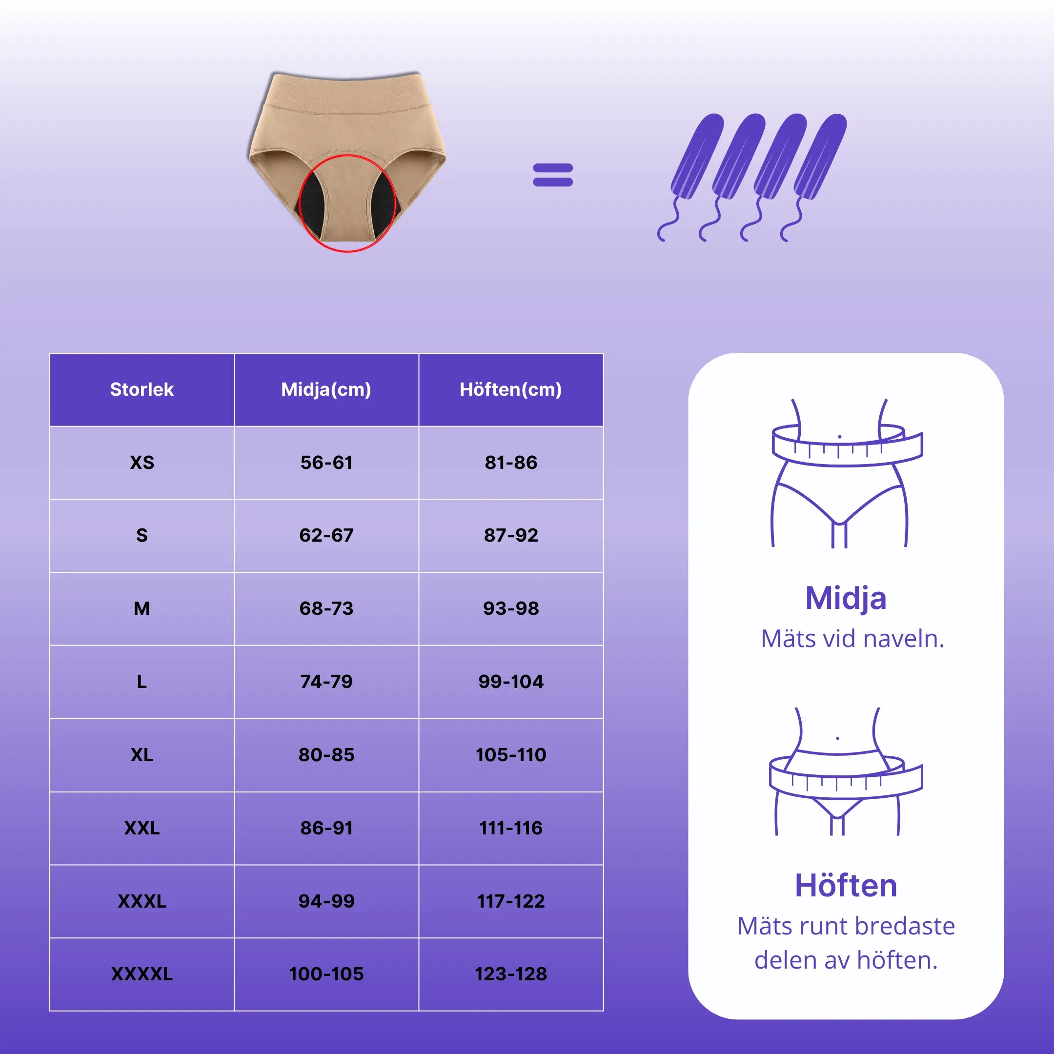 You can try the panties at home in peace and quiet. If the size doesn't feel right, we will send a new pair in the size you need completely free of charge. You get to keep the first pair.