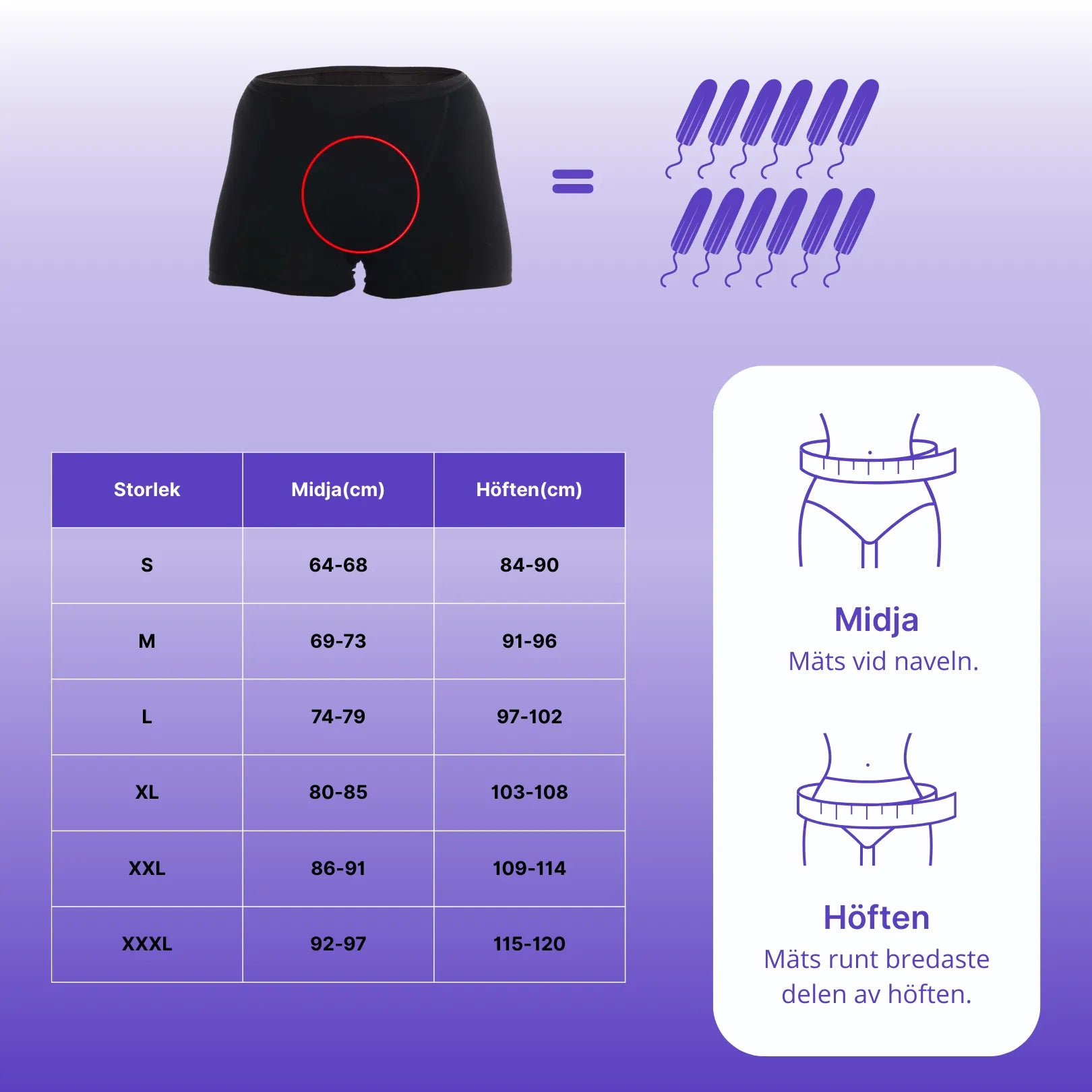 You can try the panties at home in peace and quiet. If the size doesn't feel right, we will send a new pair in the size you need completely free of charge. You get to keep the first pair.