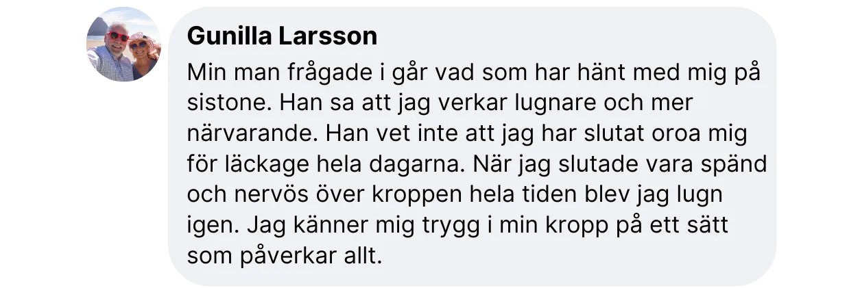 - Lätt inkontinens (skratt, nysning, träning)