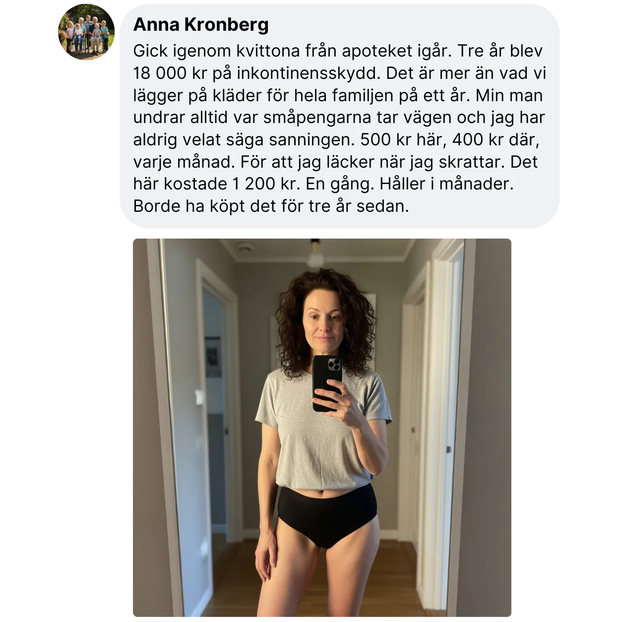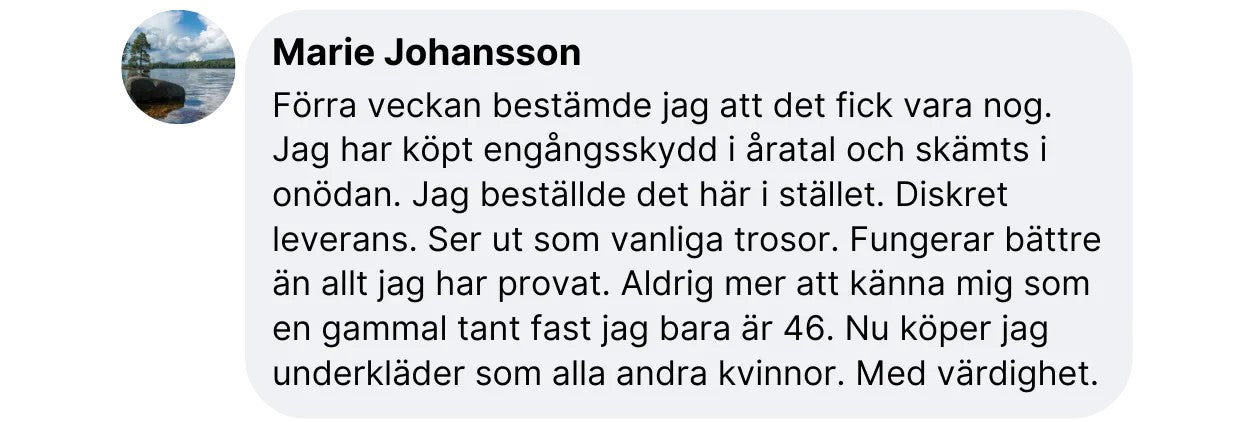 “Känns som vanliga trosor men ger trygghet hela dagen.”